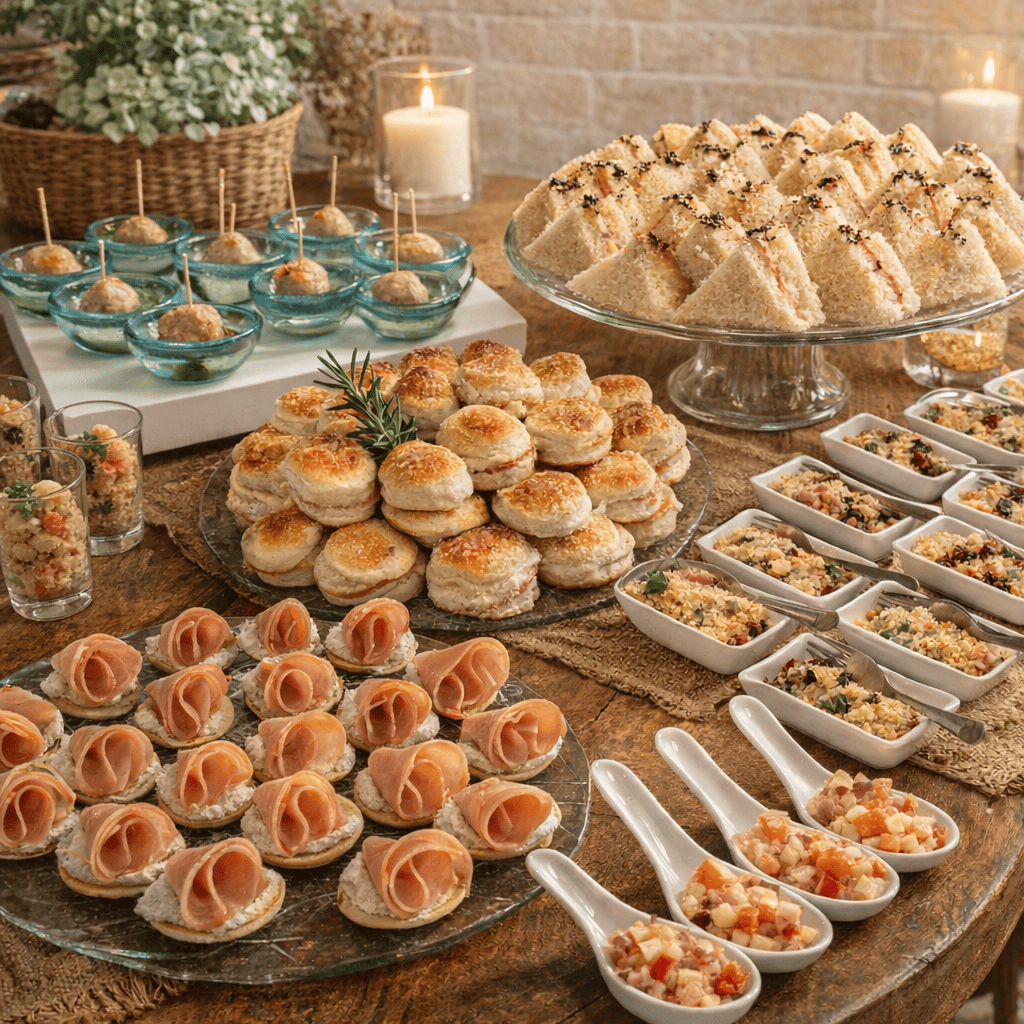 Finger Food são comidinhas de festa pequeninas e bem apresentadas.